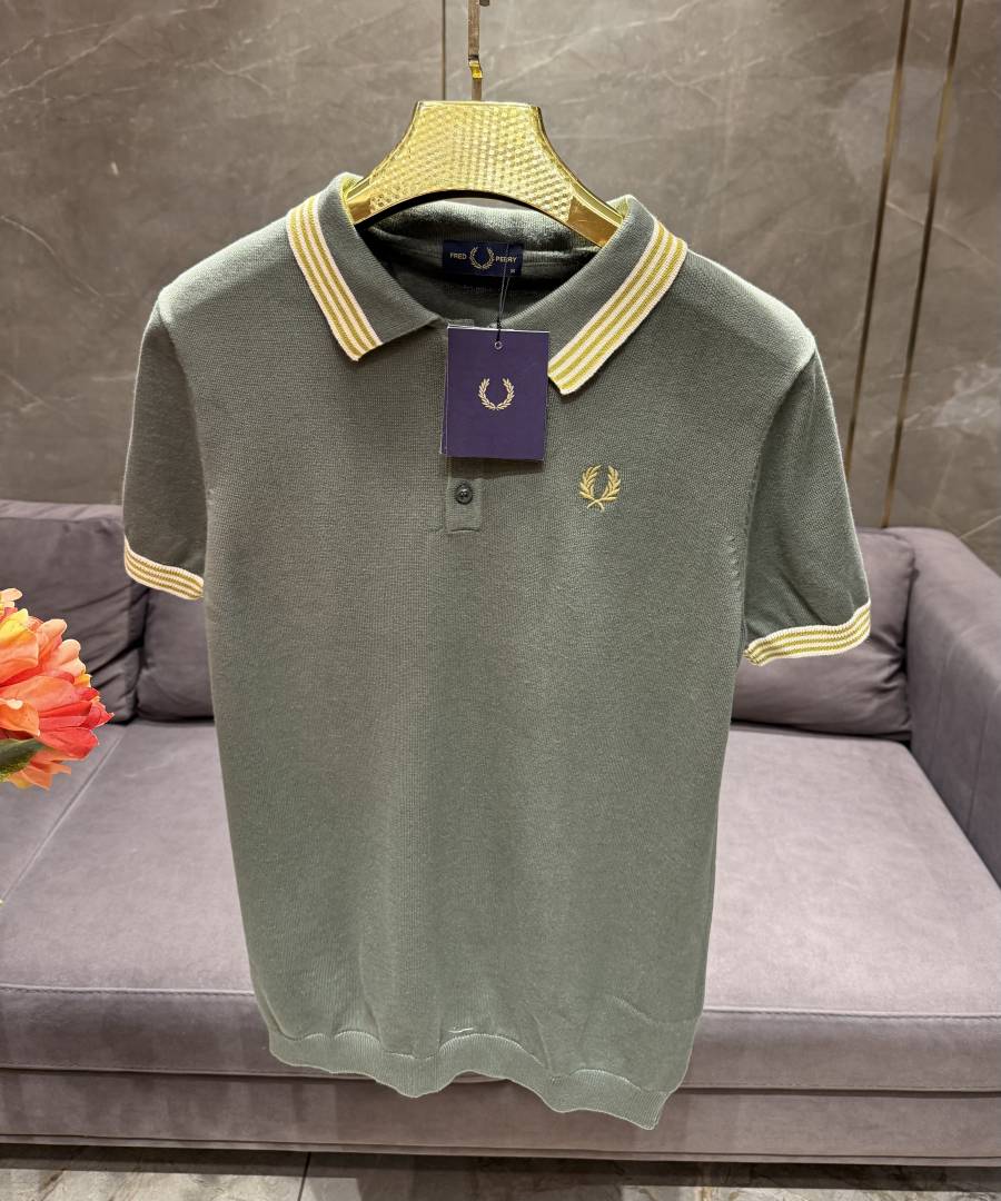FRED PERRY GREEN KNITTED PREMIUM POLO