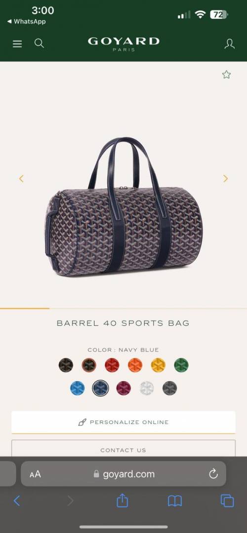 • Goyard Barrel 40 Sports Bag Goyardine Tri Colour