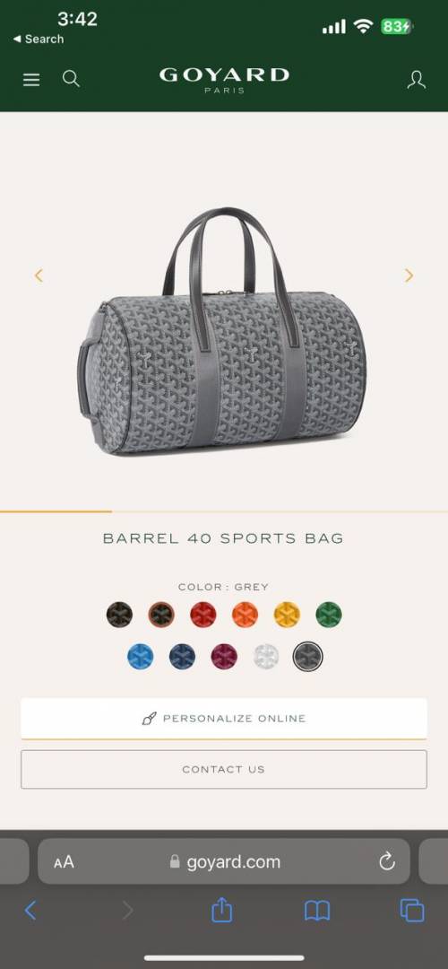 • Goyard Barrel 40 Sports Bag Goyardine Grey
