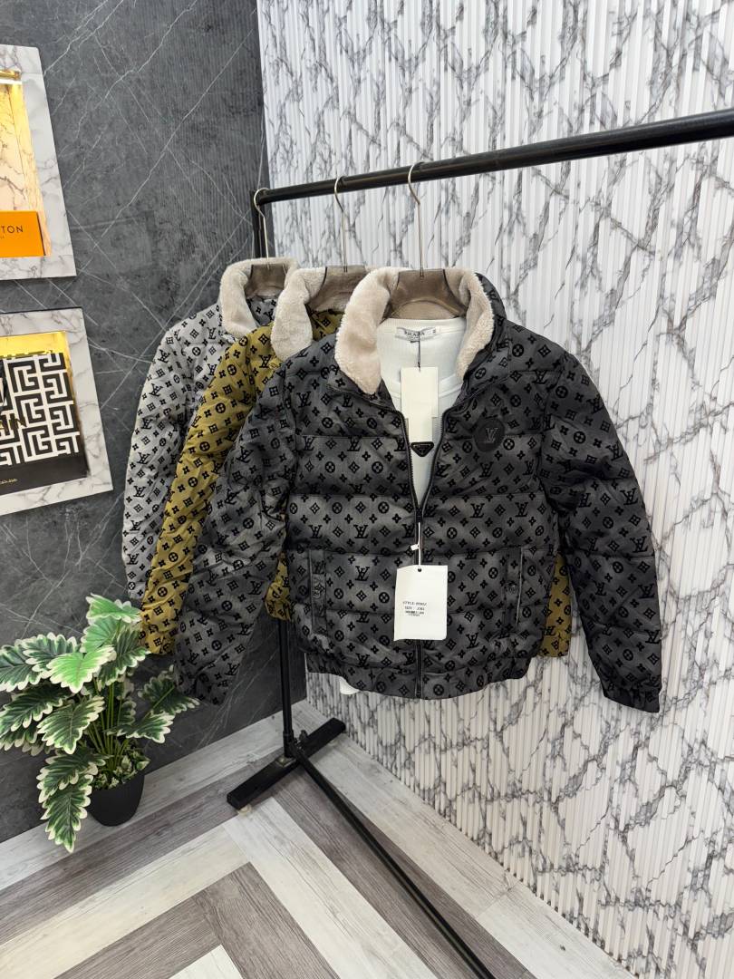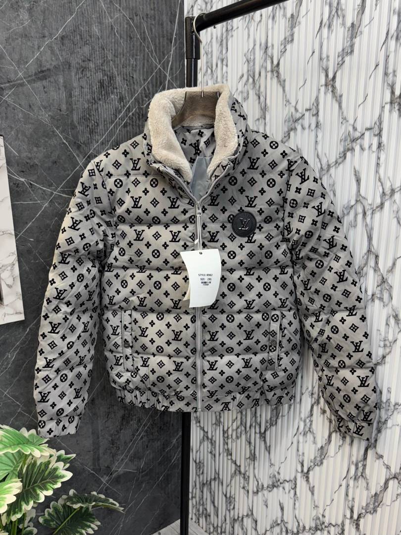 Louis.Vuitton.100%.Imported.All.Over.Embossed.Very.Premium.Heavy.Puffer.Jacket.With.Furr.Collar.CS261