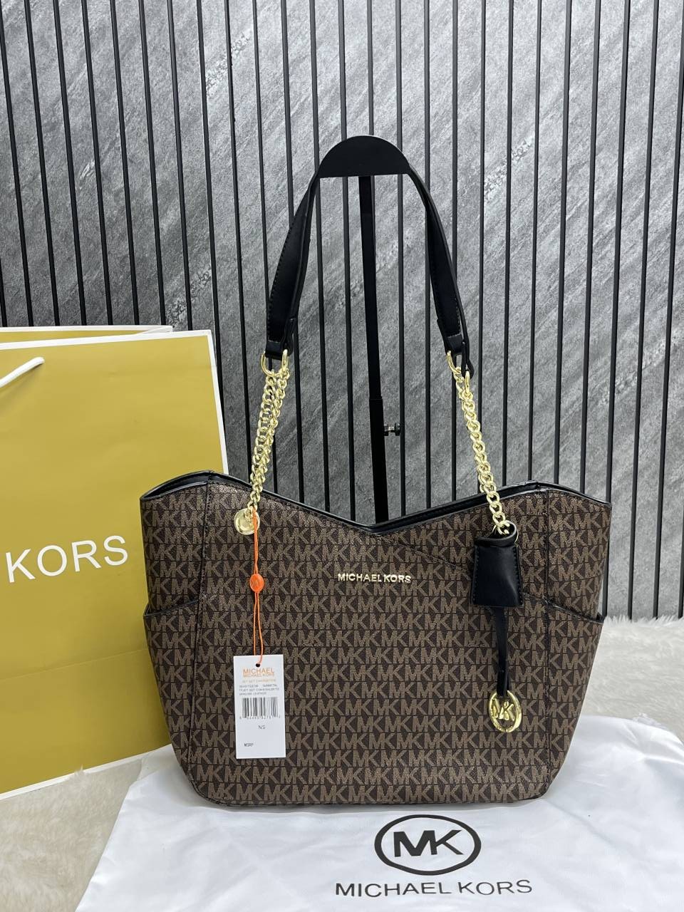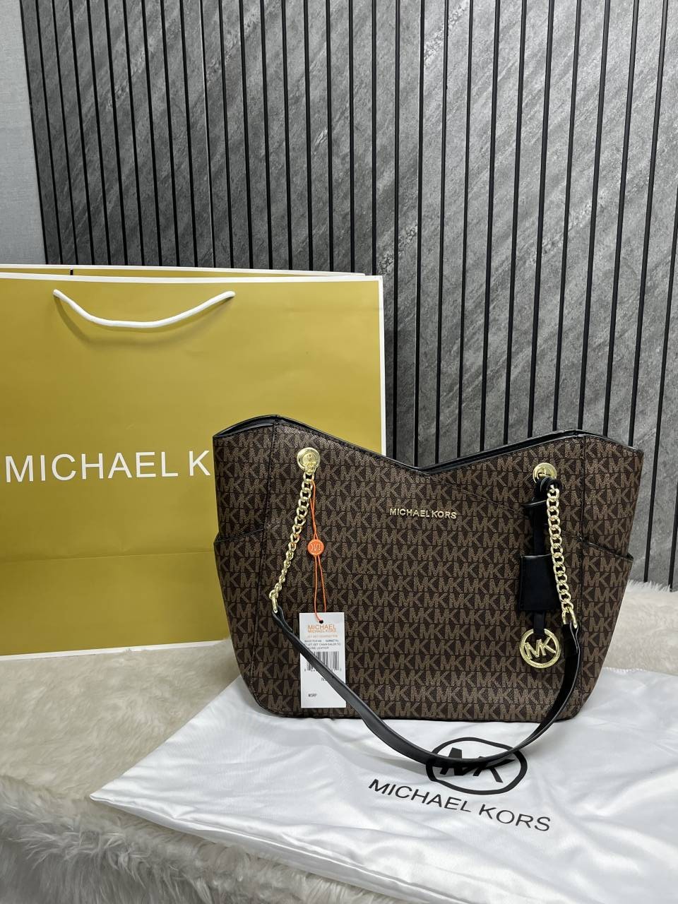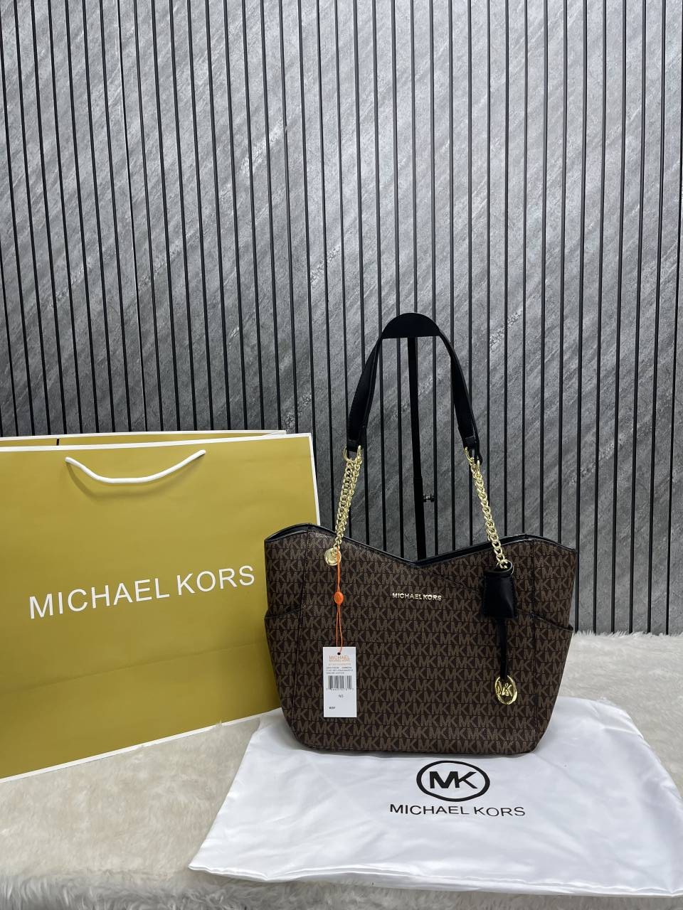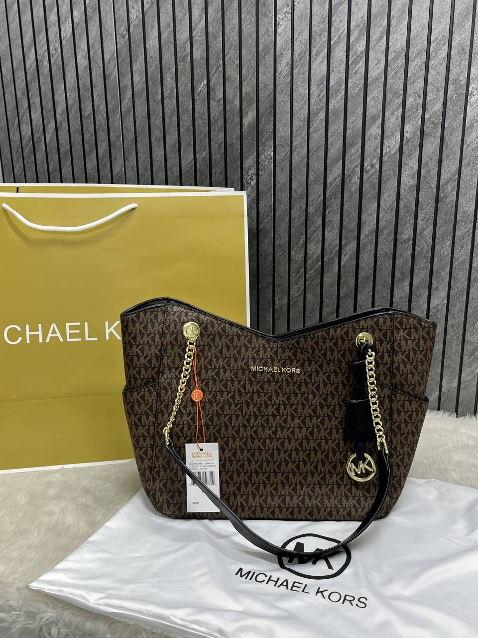Michael_Kors Carter Tote Bag With Dust Bag Including Card (Brown) (V-21004)