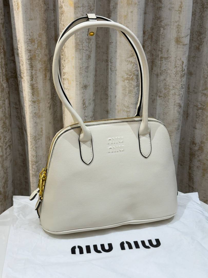 Miu Miu Embossed-Logo Medium Tote Bag With Dust Bag (3005 White)