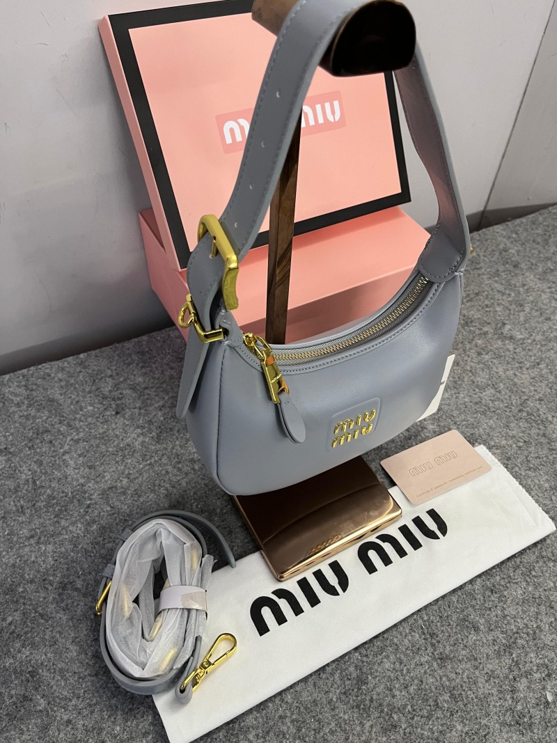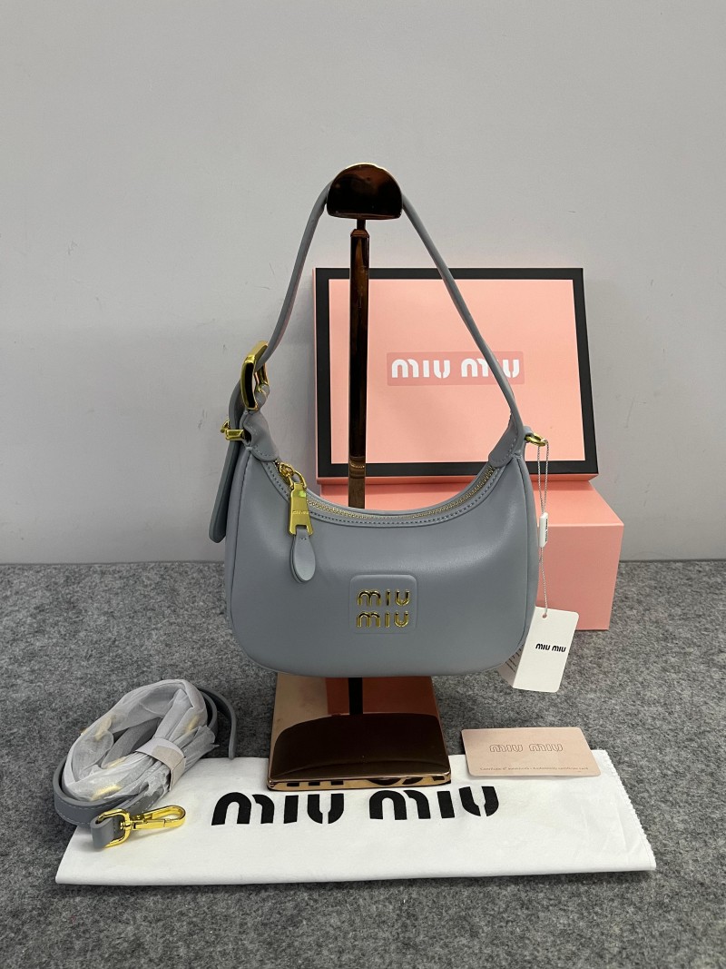 Miu Miu Leather Hobo armpit Bag With OG Box & Dust Bag (359 Grey)