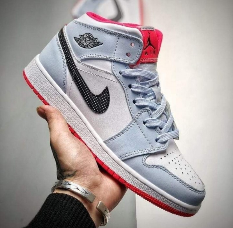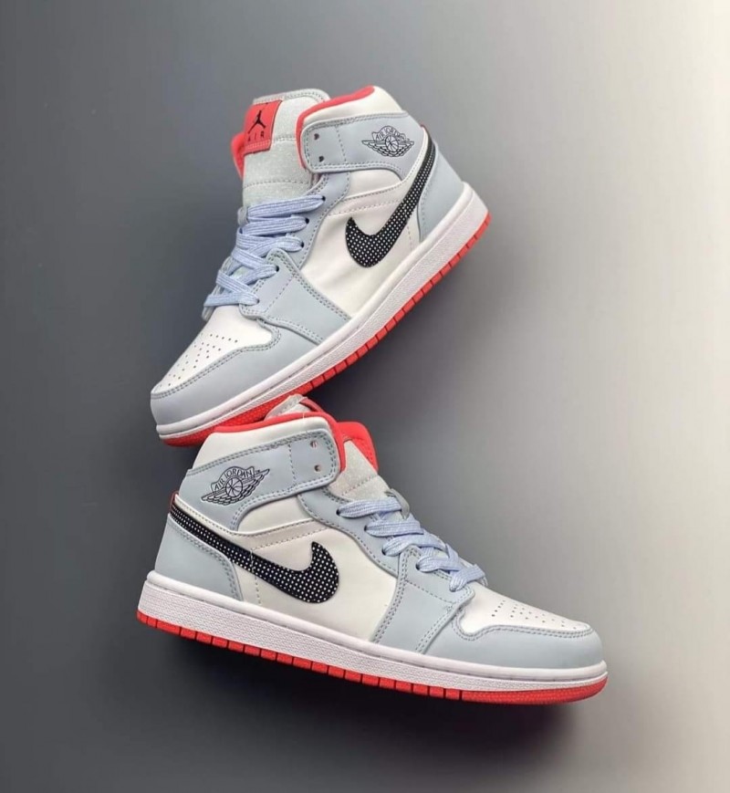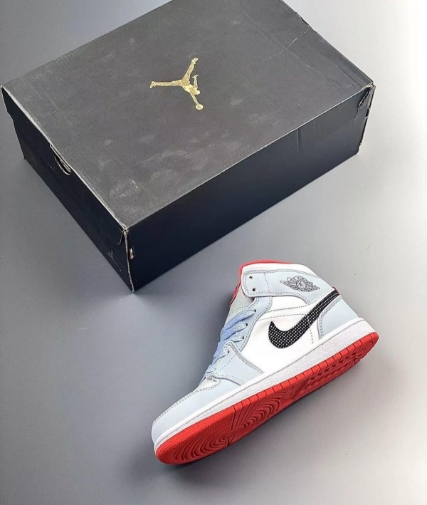 nike jordan retro 1 mid half BLUE POLKA DOT SWOOSH GS