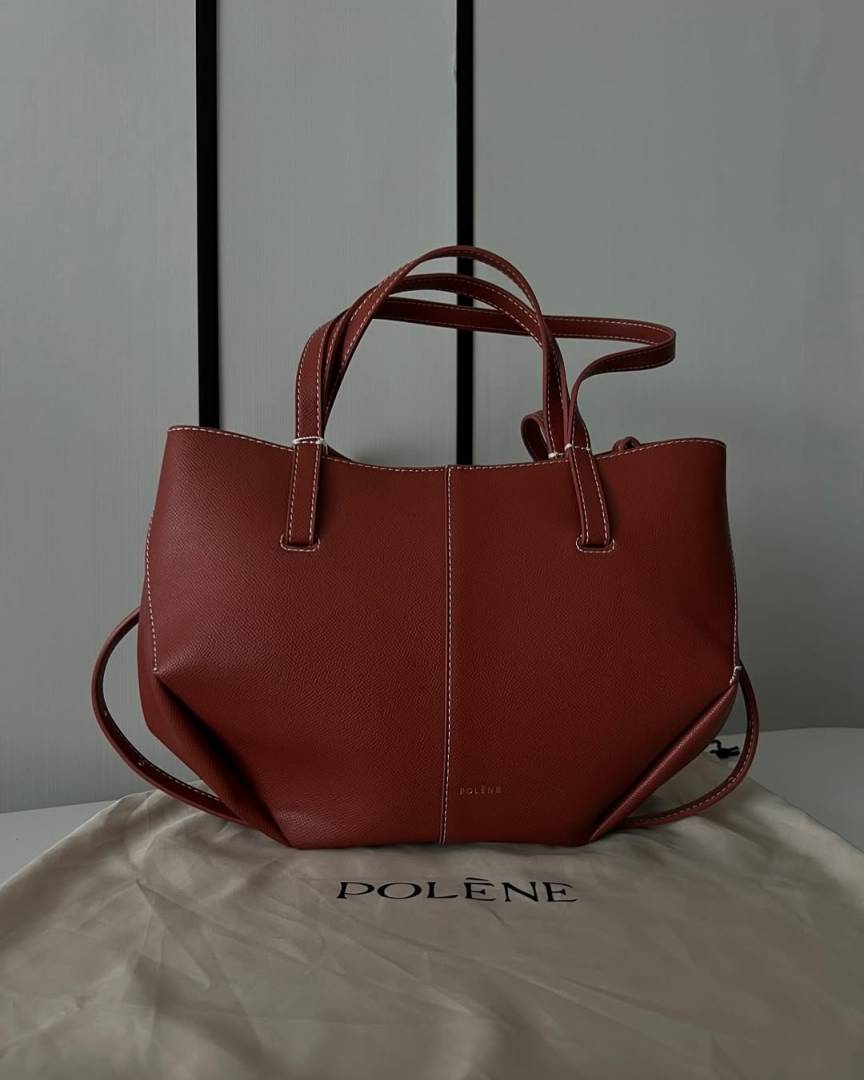 Polene Cyme Large Tote With Wallet & Original Dust Cover Maroon Wine
