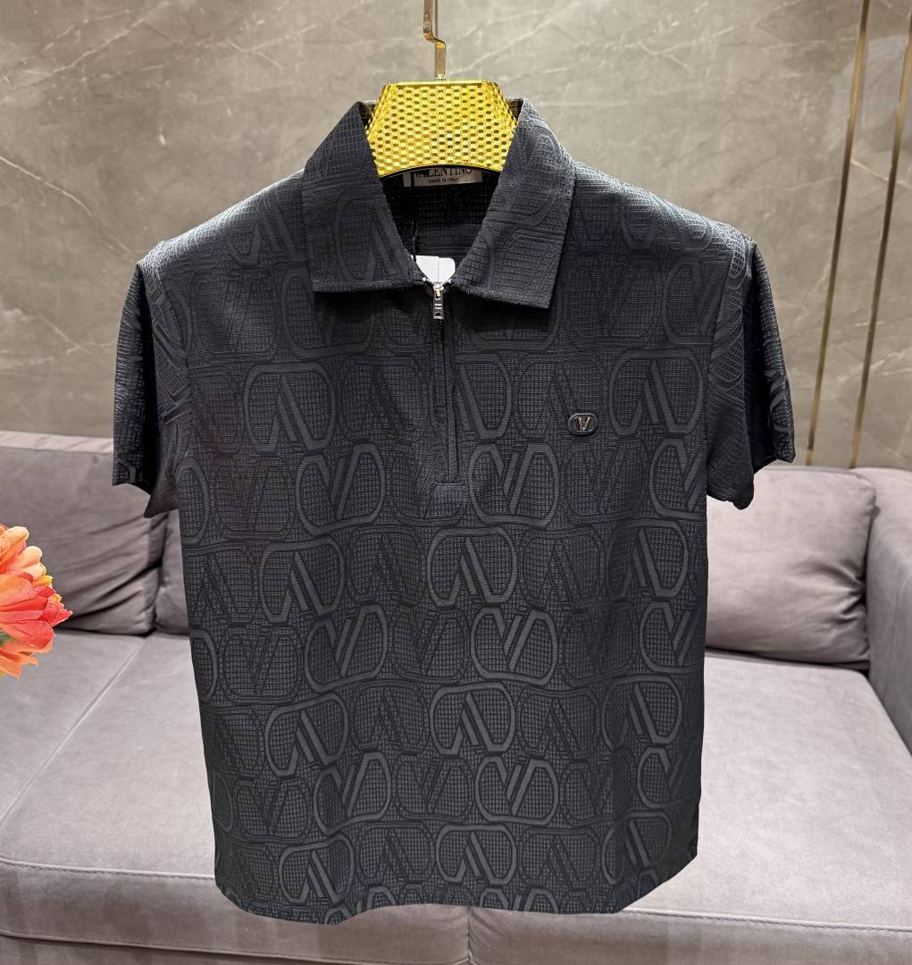 VALENTIN_O PREMIUM BLACK FABRIC FULL FRONT BACK POLO