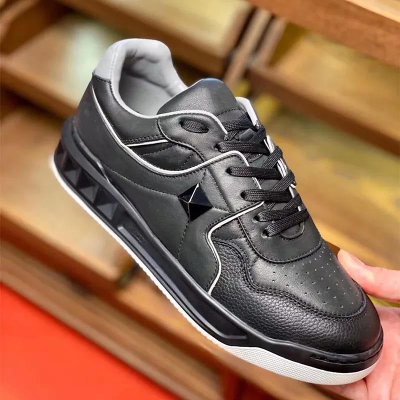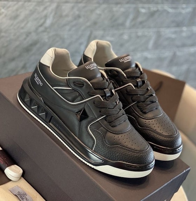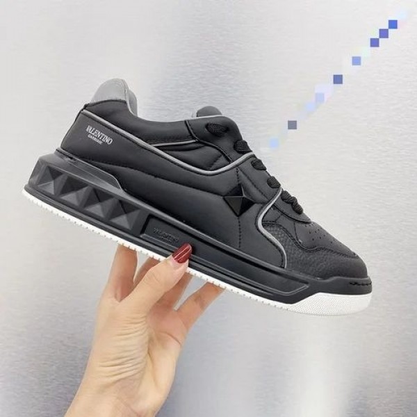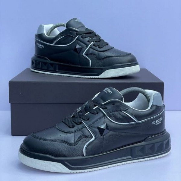 Valentino Garavani One Stud Low Top Nappa Sneaker Black White